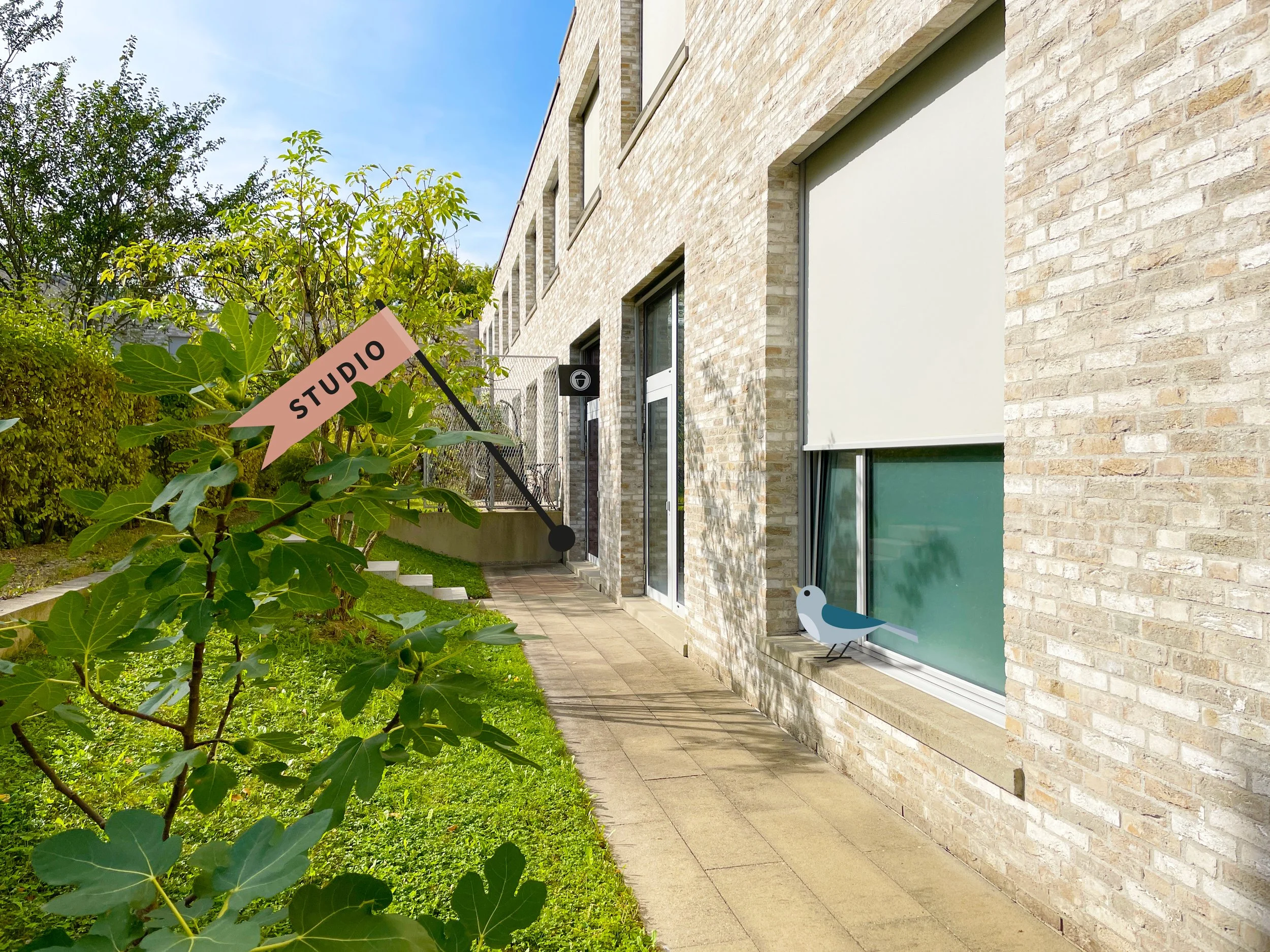 Das Studio befindet sich etwas versteckt im Mattenhof. Der Eingang liegt nicht bei der Hausnummer 4, sondern hinter dem Quartierrestaurant „Tuscany“. Ein kleiner, eher unscheinbarer Weg führt links vom Restaurant zum Studio. Es ist die letzte Gewerbefläche, bevor die Einfamilienhäuser beginnen.